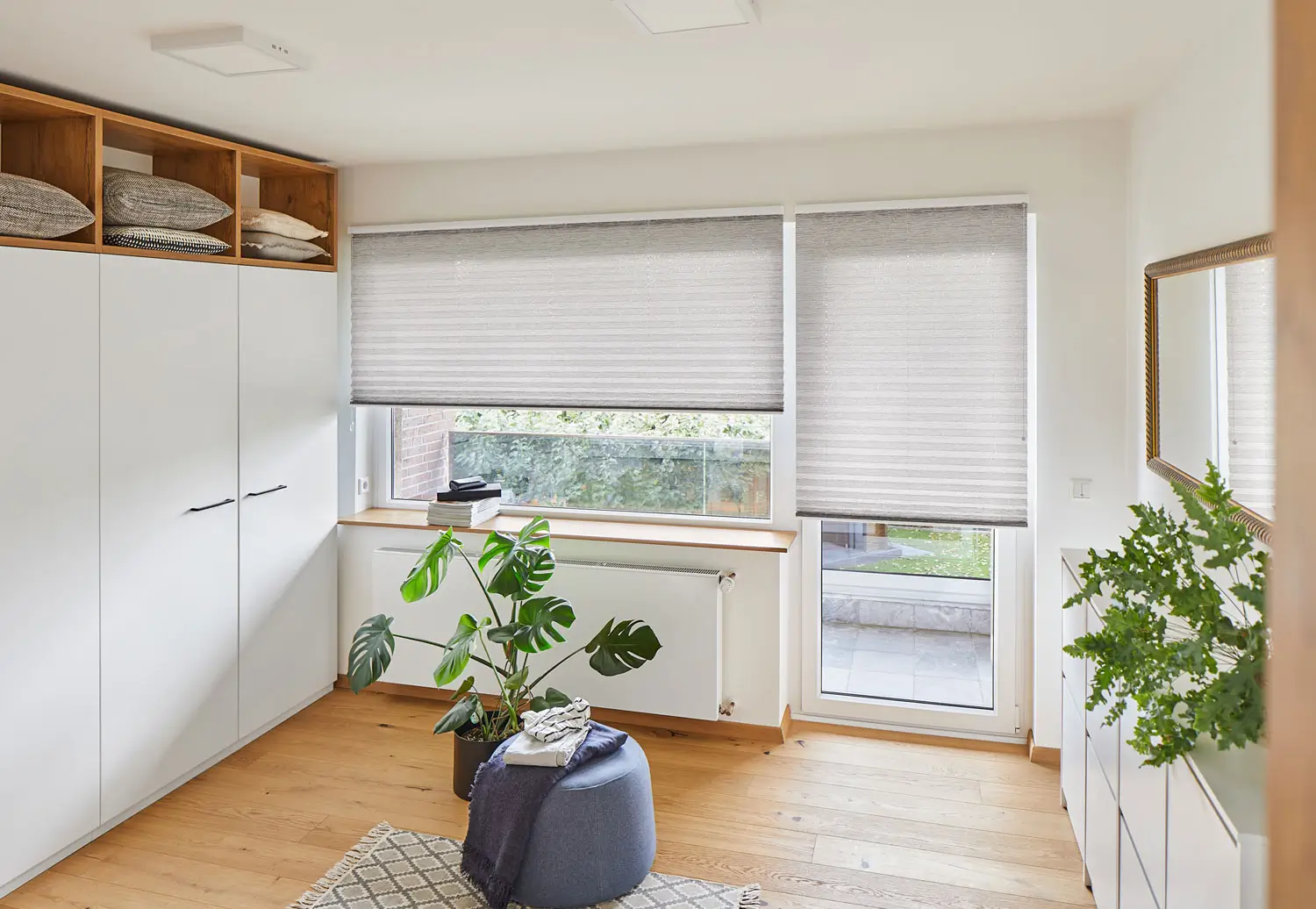 Plissees bestehen aus gefaltetem Stoff, der in jeder gewünschten Höhe fixiert werden kann. Rollos sind Klassiker mit aufrollbarem Behang – ideal für klare, reduzierte Fensterflächen.
