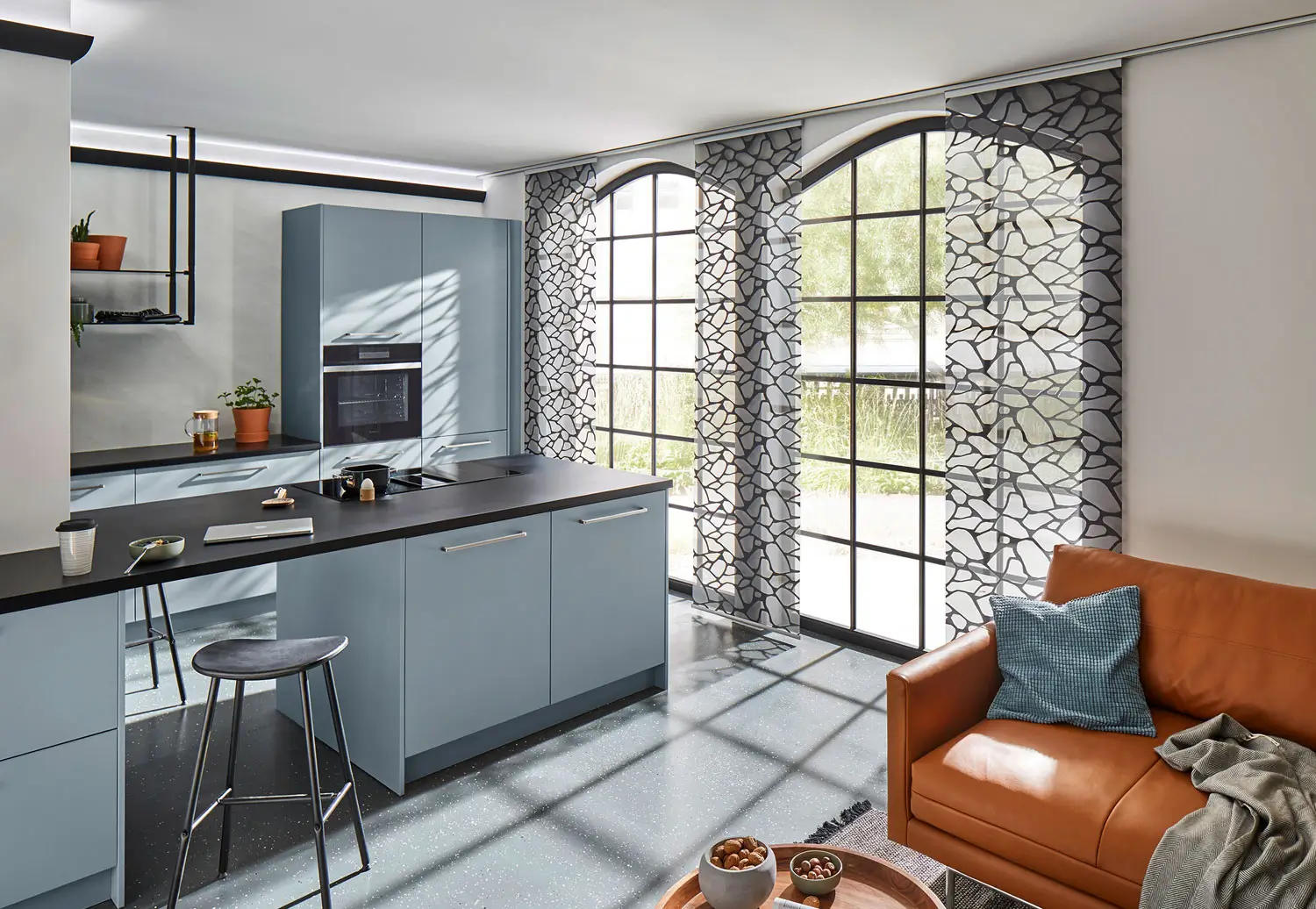 Nein. Flächenvorhänge sind besonders flexibel: Sie lassen sich bei großen Glasfronten einsetzen, funktionieren aber ebenso als Raumteiler oder gestalterisches Element im Wohnbereich.