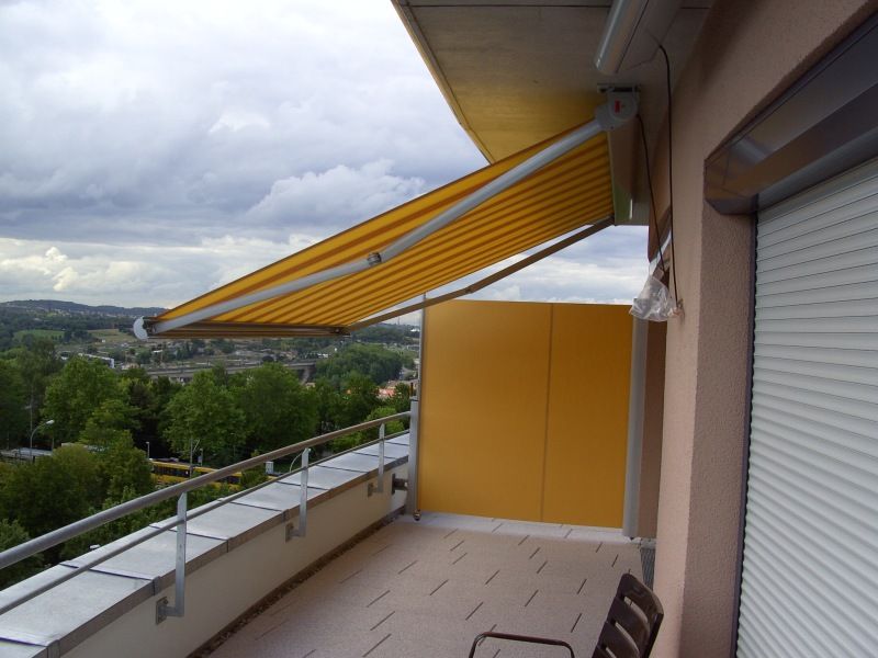 Bei fast allen Markisentypen lässt sich vorne ein absenkbarer Volant integrieren, welcher auch bei Südwest Ausrichtung Ihrer Terrasse effektiv Schatten spendet.